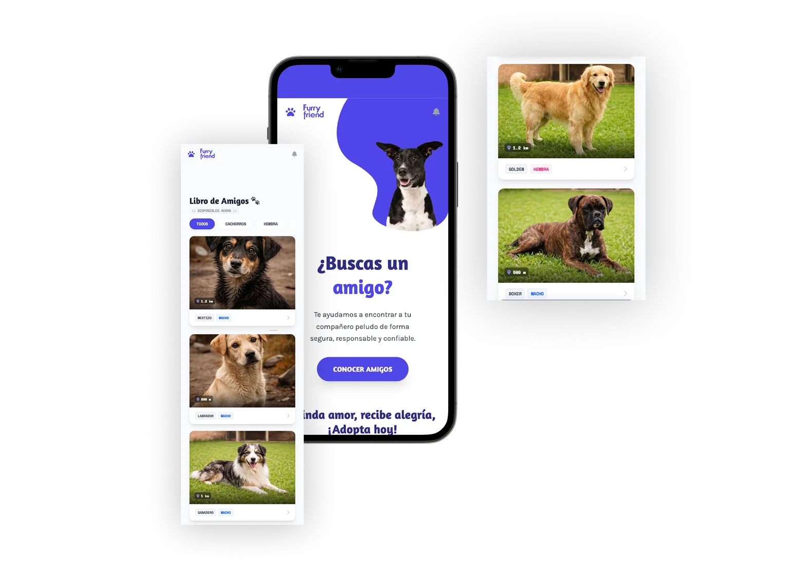 Diseño de plataforma web de adopción responsable que conecta personas y perritos según ubicación real, reduciendo distancia e incertidumbre sin acelerar decisiones: guiando adopciones conscientes desde el primer contacto.